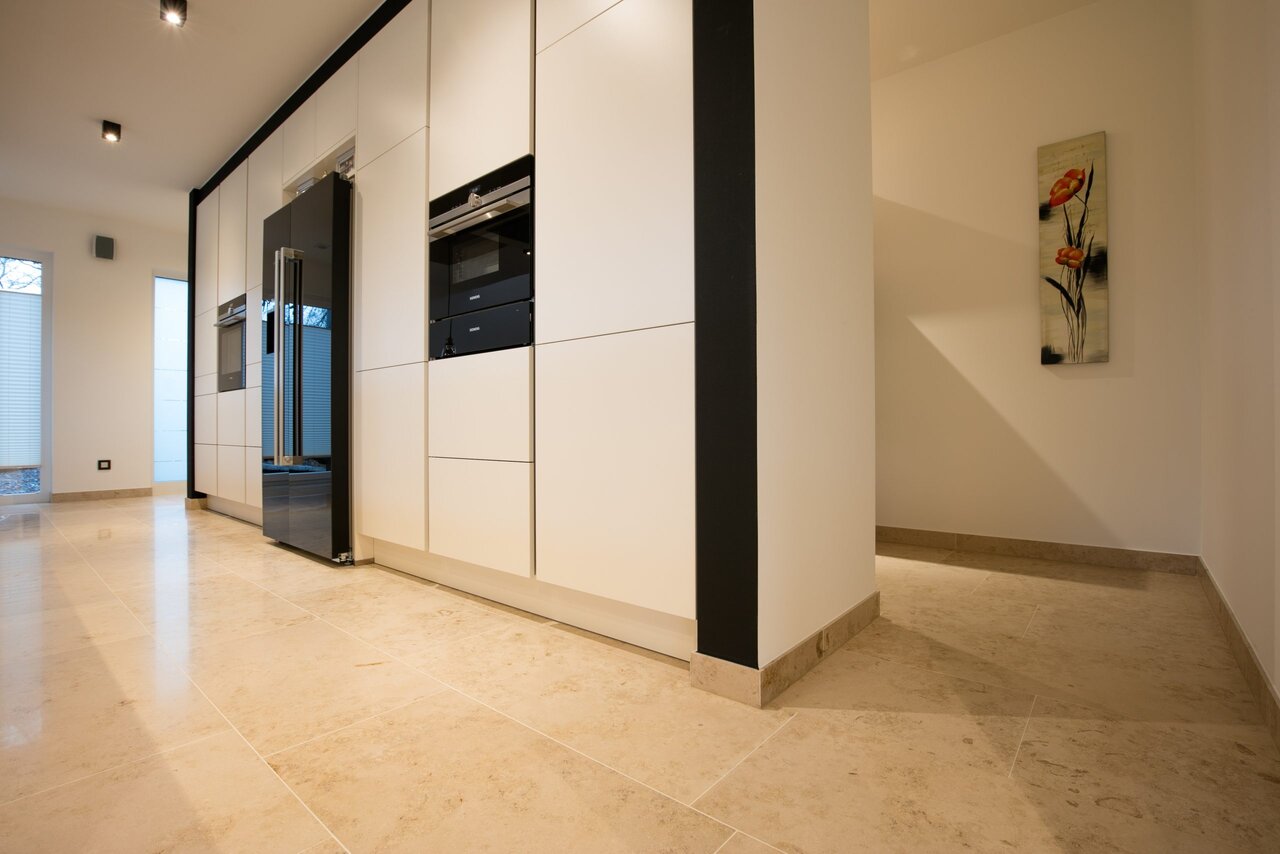 Abgesehen davon ist es ratsam, Ihren Kalksteinboden nach Verlegung zu imprägnieren, um den Boden etwas vor eindringenden Schmutz zu schützen, Verfärbungen zu umgehen und Flecken langzeitig leicht entfernen zu können. Hierfür eignet sich das Produkt Fleckstop von Lithofin.