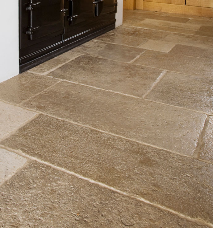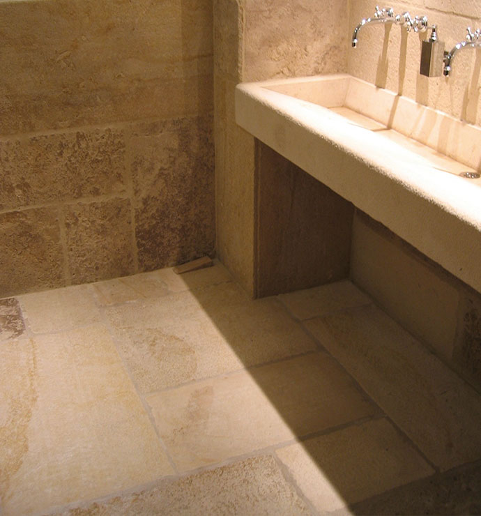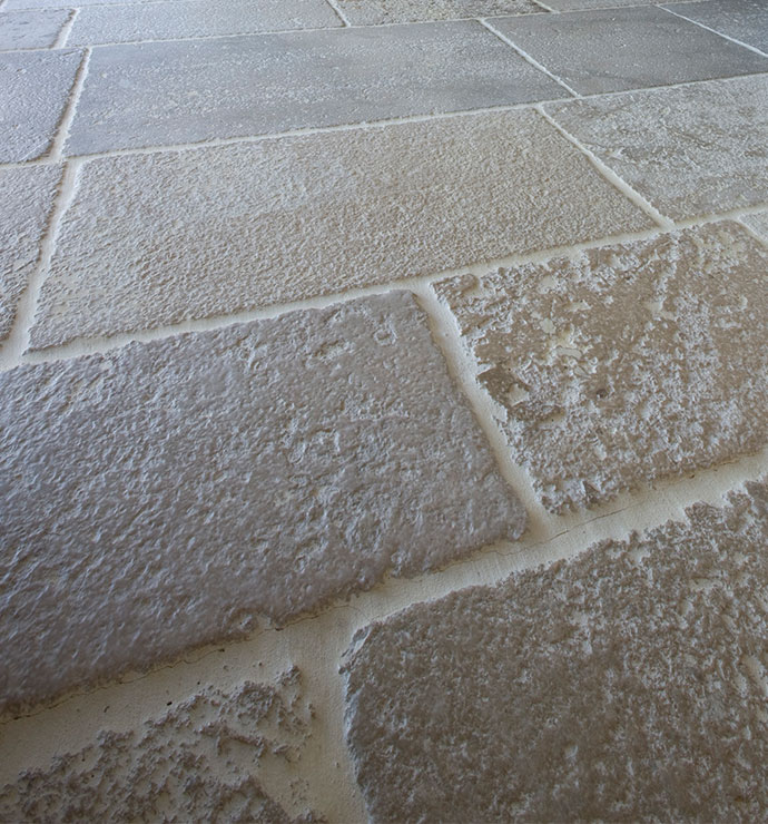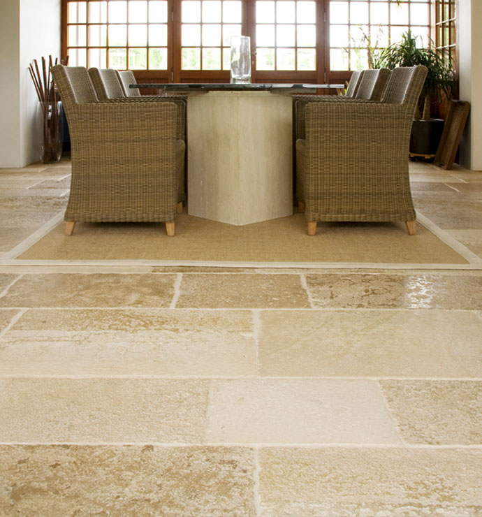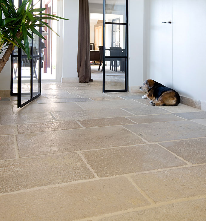 Bodenplatten wie in französichen Schlösser oder Flagstones wie auf Sylt. Diese Natursteinfliesen aus qualitativ hochwertigem Limestone werden seit Jahrhunderten für herschafftliche Atmosphären verwendet.