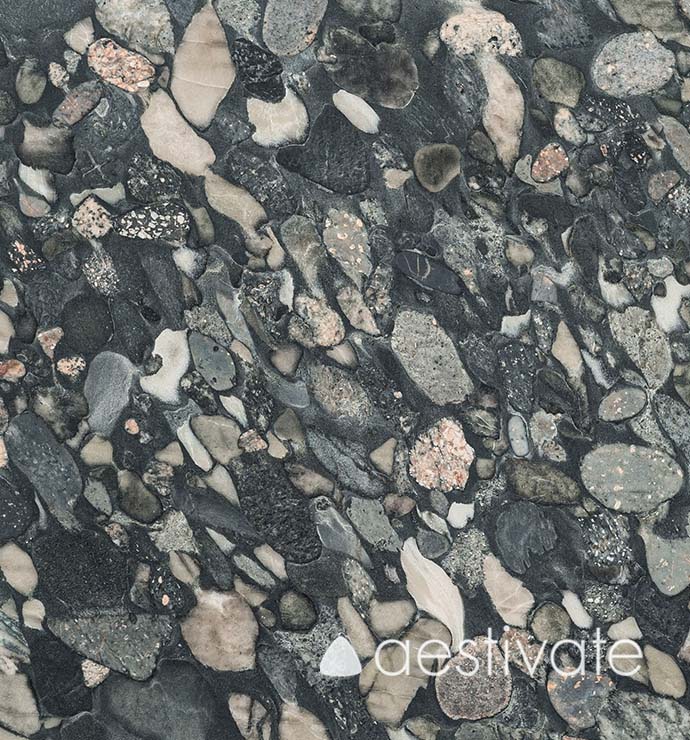 Marinace Nero ist eine Handelsbezeichnung für eine besondere Art von Natursteinfliesen. Dieser Naturstein ist ein Konglomerat, was bedeutet, dass er aus verschiedenen Gesteinsbrocken zusammengesetzt ist. Das Ergebnis ist eine dunkelgraue Fliese mit einem einzigartigen Erscheinungsbild, das durch die verschiedenen Gesteinsarten geprägt wird. Das Aussehen von Marinace Nero ist unverwechselbar und faszinierend. Der Naturstein wurde über Jahrhunderte hinweg von unterschiedlichen Gesteinsbrocken geformt, was ihm ein ausgewogenes Farbspektrum von weiß bis dunkelgrau verliehen hat. Die dunkelgraue bis schwarze, feinkörnige Matrix, die die verschiedenen Gesteinsarten miteinander verbindet, lässt diese besonders hervorstechen.