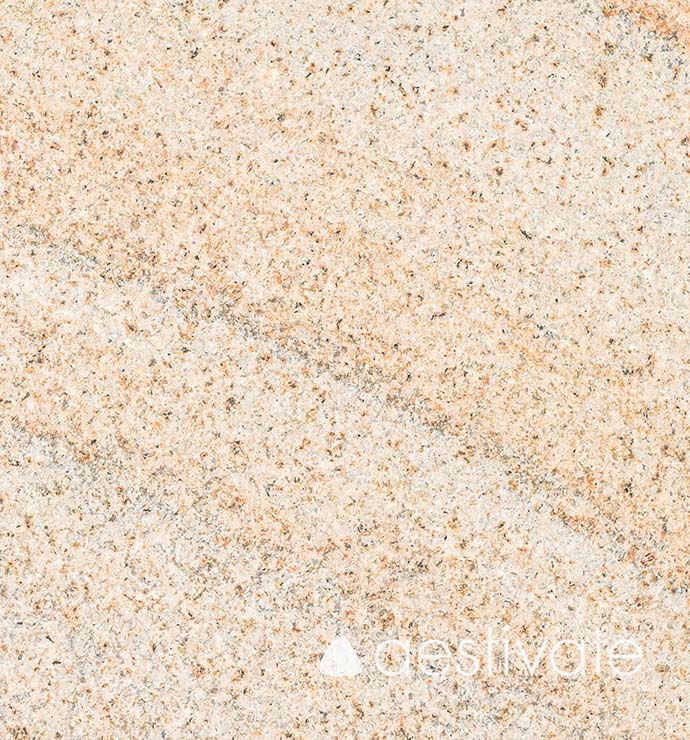 Die Verwendung von Natursteinen im Außenbereich ist schon seit vielen Jahren sehr beliebt. Besonders Granitplatten weisen eine sehr hohe Dichte auf und sind somit vor Frost und Witterungseinflüssen optimal geschützt. Granite sind magmatische Urgesteine intrusiver Herkunft. Seine Hauptbestandteile Feldspat, Quarz und Glimmer geben dem Giallo Sun sein individuelles Farbbild aus verschiedenen beige – bis hin zu gelb und orange Tönen. Außerdem ist die Oberfläche des Granits von verschieden großen, gräulichen Sprenkeln übersehen. Jede Granitplatte ein Unikat der Natur und eingefangener Moment der Erd – Entstehungsgeschichte. Das macht jeden Naturstein so besonders. Ob in Form von Platten oder Fliesen – ein Teil atemberaubende Schönheit unserer Natur verzaubert Ihr Zuhause in einen ganz besonderen Rückzugs Ort.